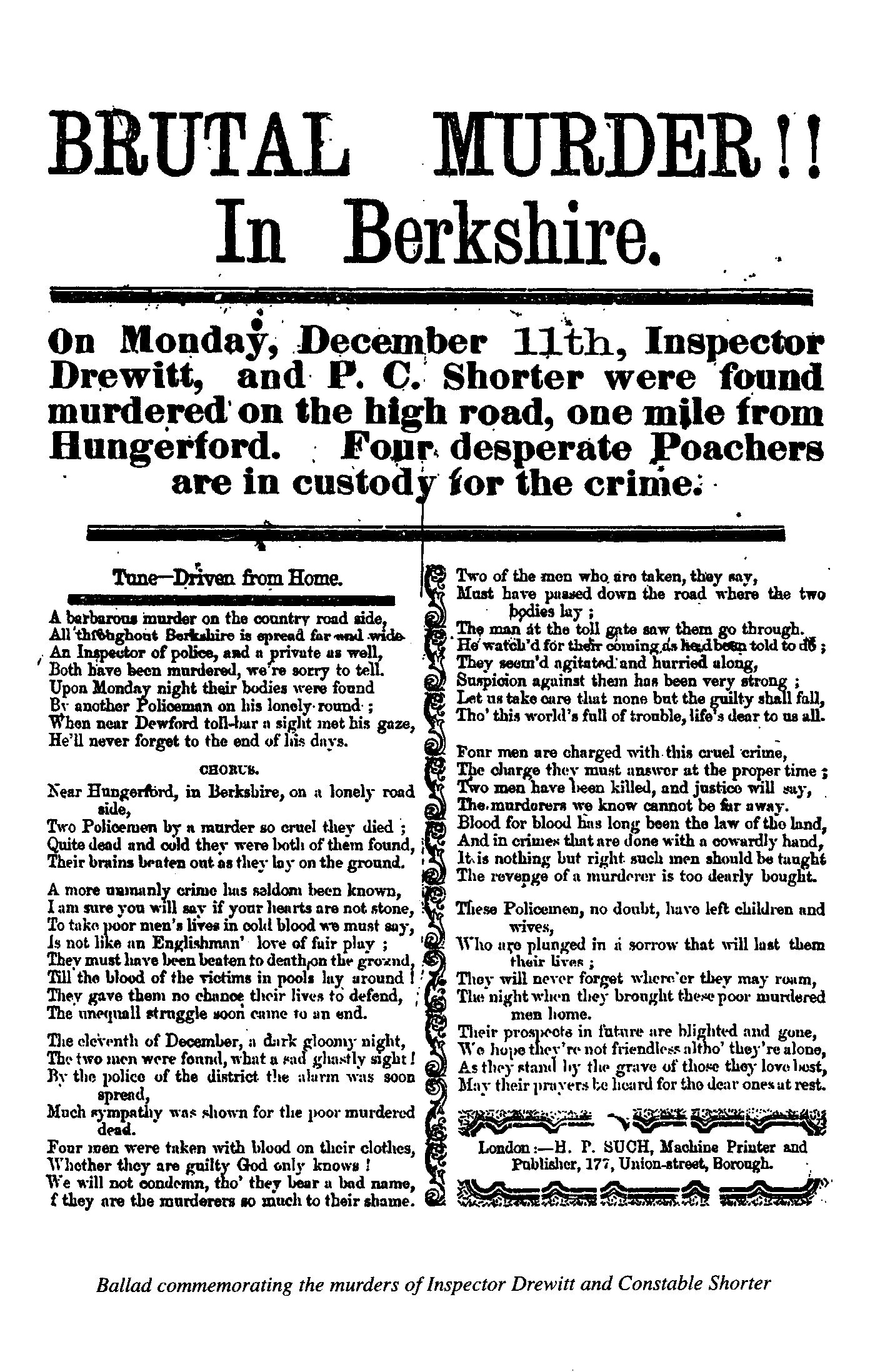 My travels took me back to the late evening of Monday the 11th of December 1876 when Inspector Joseph Drewitt and Constable Thomas Shorter were both on their beats on the north side of Hungerford. Inspector Drewitt was from the Hungerford Police Station whilst Constable Shorter was the village constable from nearby Great Shefford.